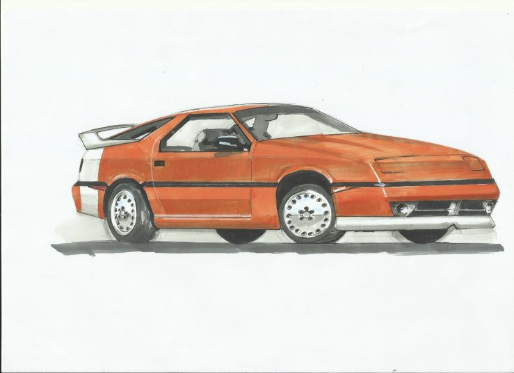This sketch is presenting Marcin’s vision to Dodge Daytona Shelby from Turbo #94. However the original style was conserved, actually it’s another car with another shape on his sketch.