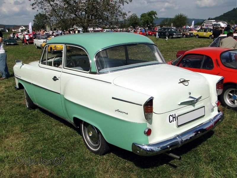 Первой Асконой был Rekord, который использовал имя горного курорта для большего успеха в Швейцарии. Являясь дочерней маркой концерна GM, Opel транслировал на Европейский континент заокеанскую эстетику почти в масштабированном, но пости чистом виде.