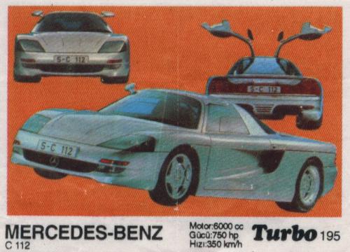 Итак, наконец-то мы узнали, что это за таинственный Мерседес из №312. Поскольку это был авторский скетч, основанный на слухах из Штутгарта, с реальным прототипом Mercedes-Benz C112 он имел мало общего. В этом можно убедиться, просмотрев его воплощения в разных сериях Турбо. Примечательно, что турки никак не могли определиться с его характеристиками. Максимальная скорость колеблется от 310 до 350 км/ч, мощность – от 408 до 750 л.с., а объем двигателя от 5000 до 6000 см3)