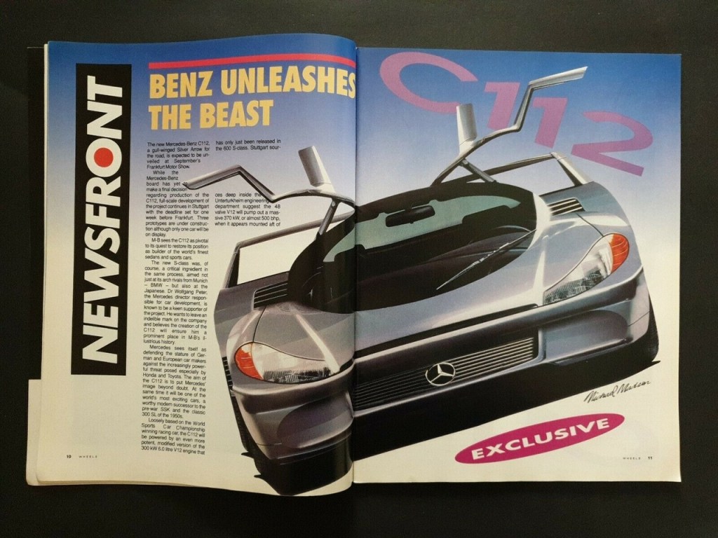 Уже лучше! Хоть какие-то детали появились. Значит, возможно, это один из дизайнерских скетчей Mercedes-Benz C112. А этот Мерседес был впервые представлен публике на Франкфуртском автосалоне в сентябре 1991 года. Значит, и журнал, в котором он мог быть опубликован, должен был быть выпущен до этой даты.