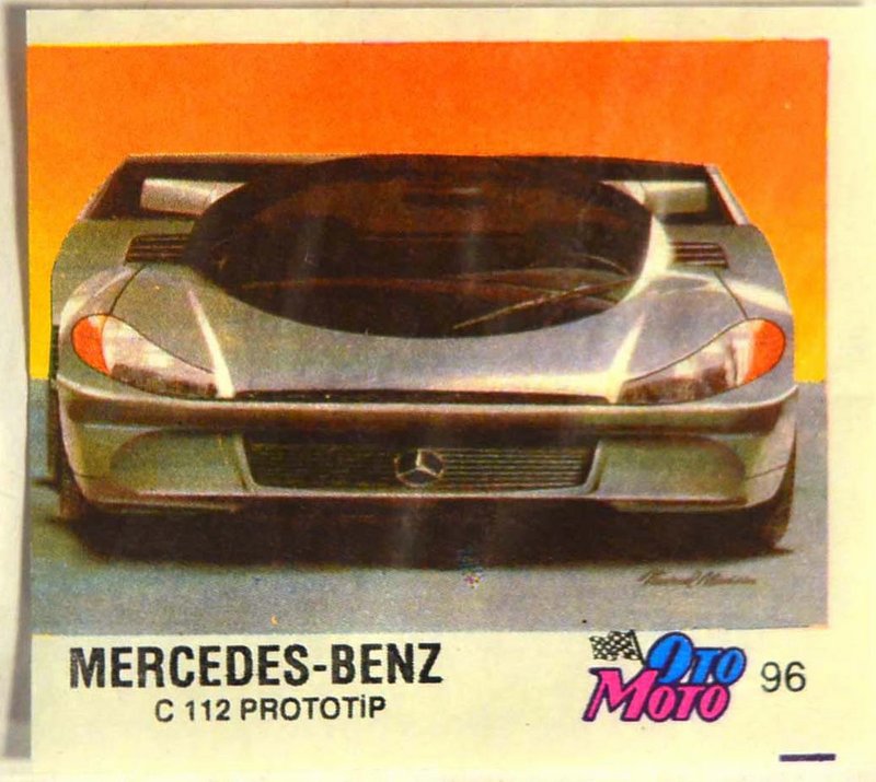 Зная, что исходники Турбо и других серий вкладышей бывают взяты из одного источника, мы решили повнимательнее присмотреться и поискать другие возможные ракурсы этого Мерседеса. После детального изучения нескольких серий вкладышей, наиболее похожим по стилю оказался прототип с ОтоМото №96.