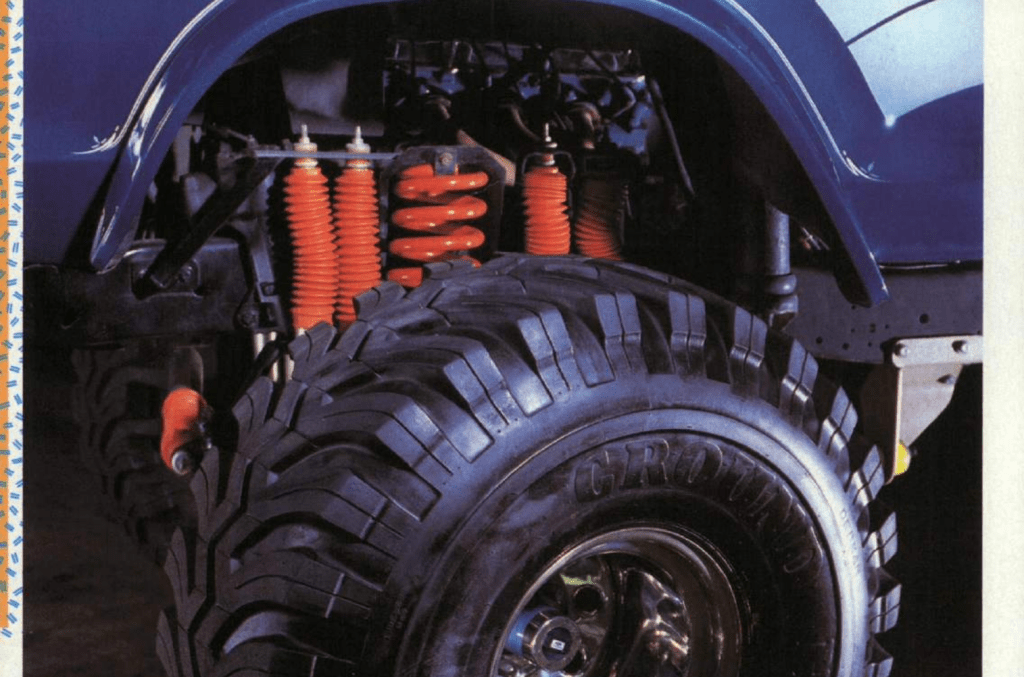 А как элементы тюнинга перекликаются с логотипами вкладыша: популярные американские желтые противотуманки «KC» с традиционной жёлтой заливкой «Turbo», красная номерная табличка на бампере с крупным овалом «Kent», золотистая рамочка и заглавная надпись «Chevrolet» находит ответ в густом песке, буквально глотающем этого лифтованного зверя.